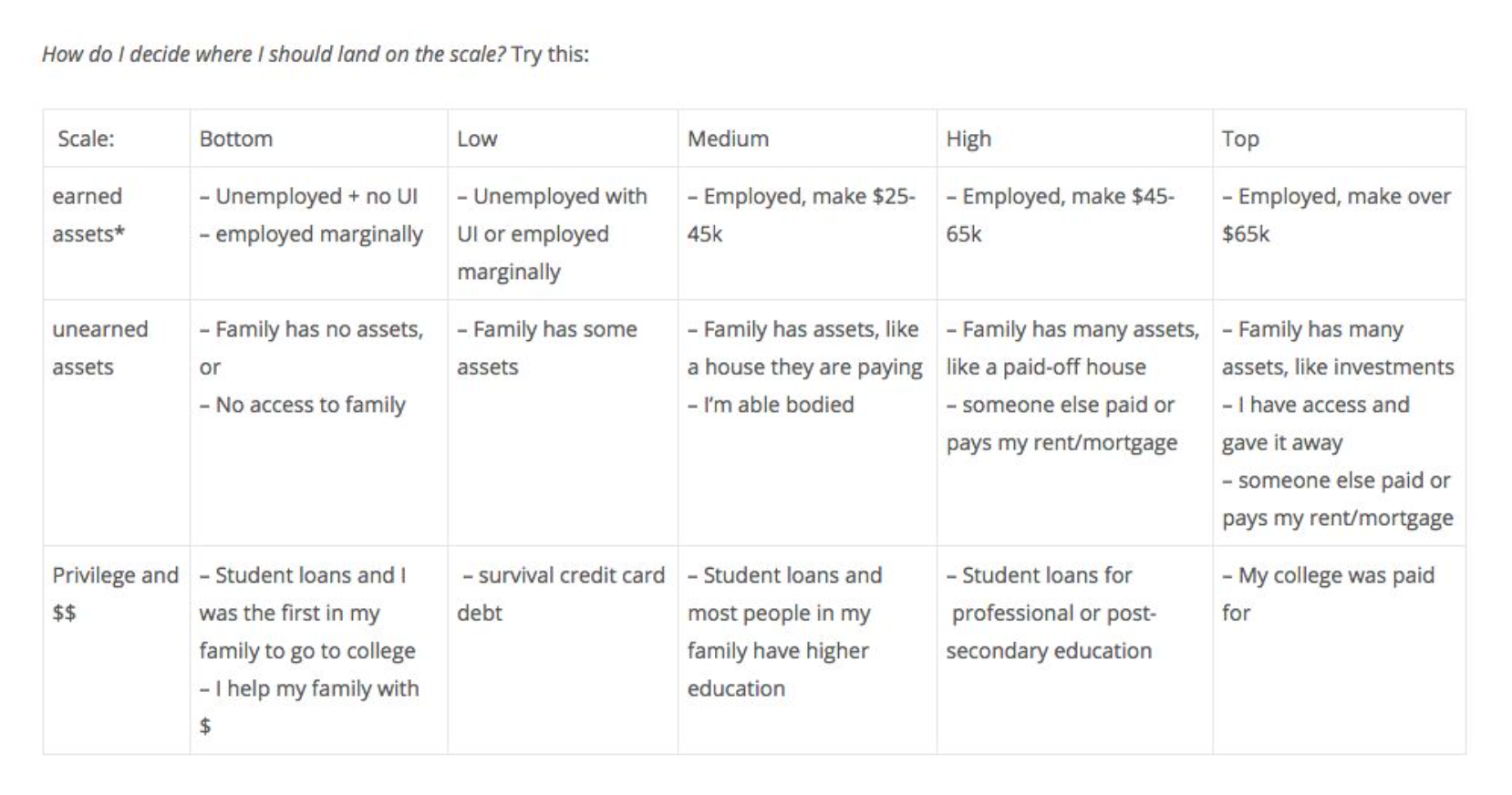If you are part of a historically dominant group of people (white, cis-male or -female, and heterosexual), I invite you to carefully consider the rate that you are able to pay, knowing that by offering what you are able, you are contributing to a community of healing for us all. If you have ideas on how I can improve this system please let me know! Here are two images I like that can help you determine where you fall on the scale: